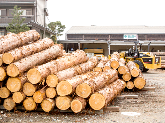 製材工場にはヒノキ、杉、米松の木を大量に保有しており、品質はもちろん、木目や木肌など意匠的に木材をお選びいただくことも可能です。