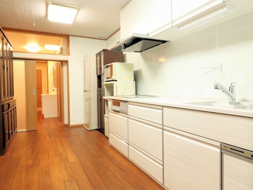 廊下とキッチンの壁を取り除き広いダイニングキッチンに生まれ変わり、お風呂もゆったり快適