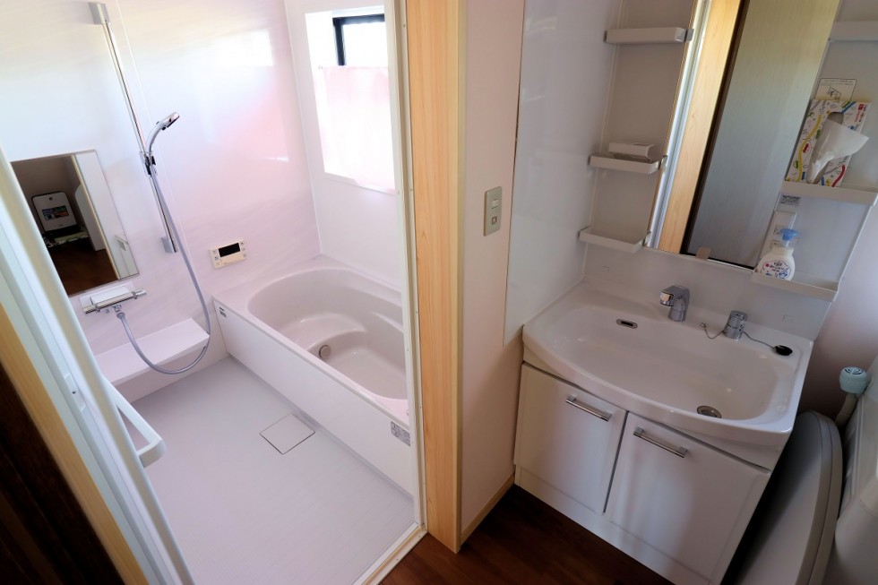 外壁は塗装施工で明るい印象に、浴室と洗面脱衣室の改修でより暖かく快適になりました。また、和室の畳の表替えや建具のクリーニング・障子の貼替をして気分もアップ。